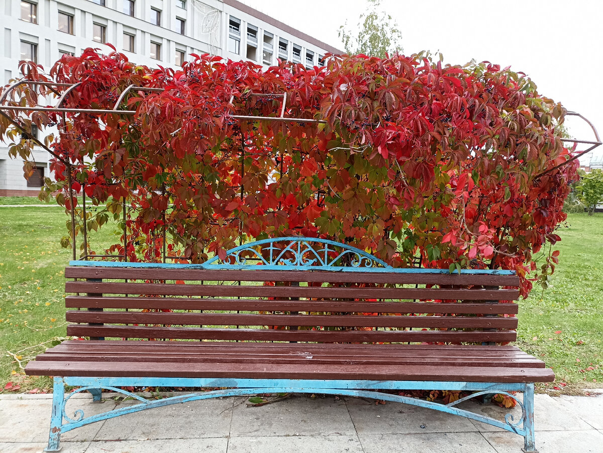 По пути пересекли парк Тысячилетия с увитыми красивыми растениями скамейками.