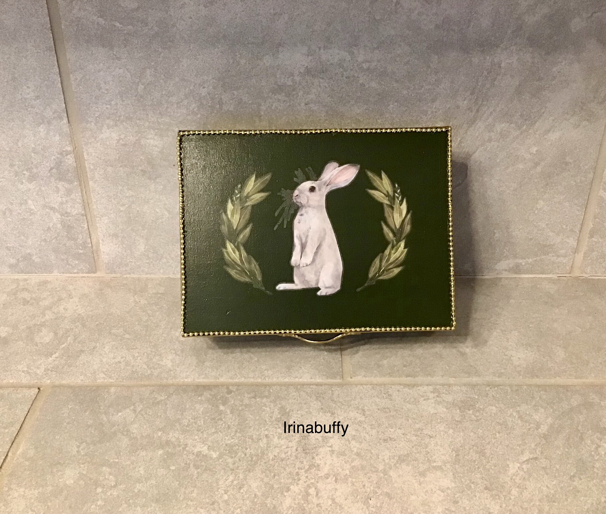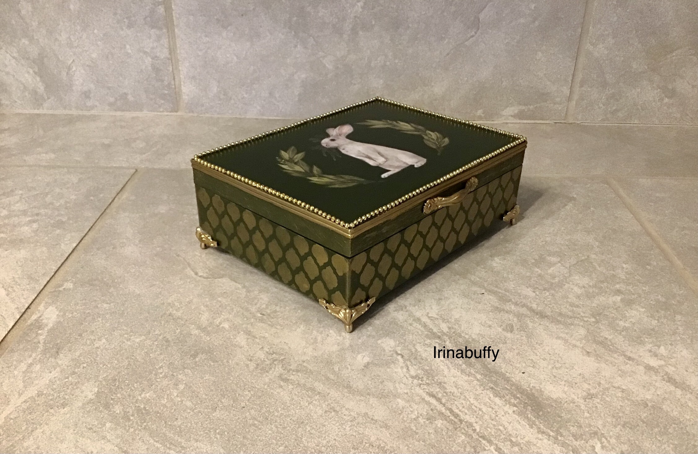 Леночка, спасибо тебе! Думаю, в шкатулке совпал темно- зелёный с золотом, это добавило благородства.И не хотелось зайку чем- то окружать.