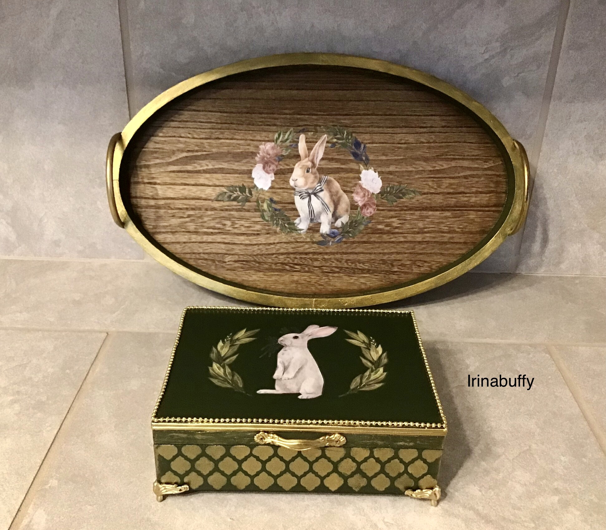 Даже зайчики /кролики ни грамма не убавили изысканности шкатулочки и подноса. Обычно сами по себе они смягчают чтоли… Но в данном случае это точно зайчики благородной породы!