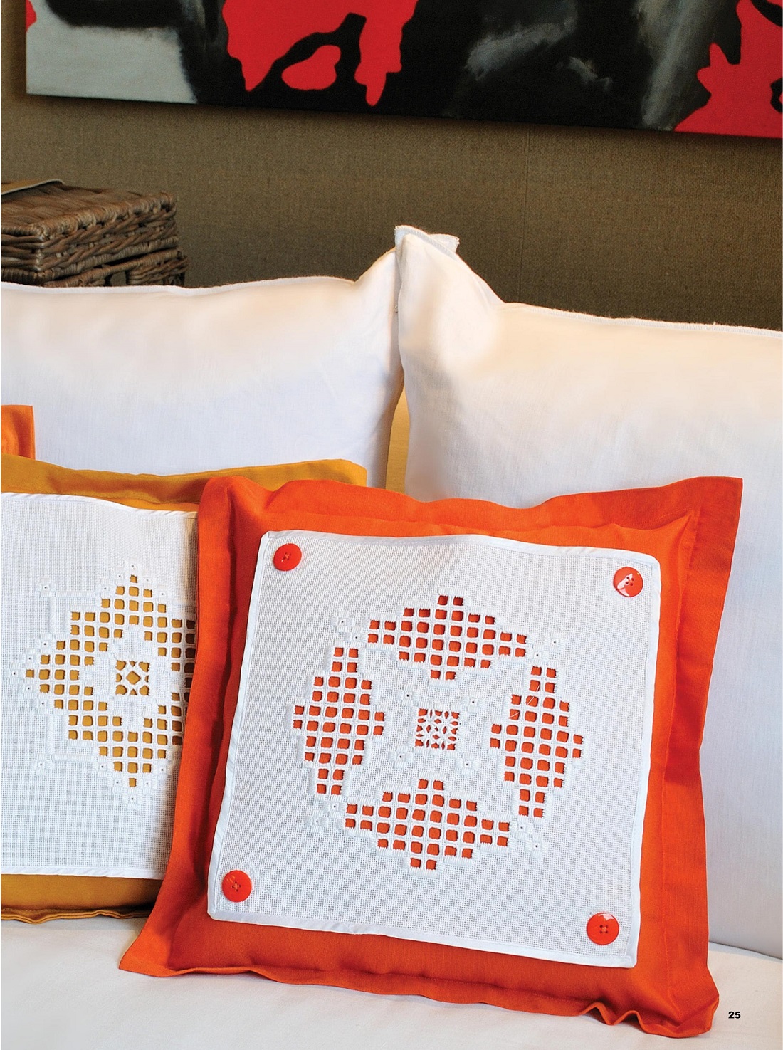Бразильский журнал по рукоделию. Здесь рукодельницы найдут много проектов по вышивке крестиком в сочетании с вязанием в филейной технике.