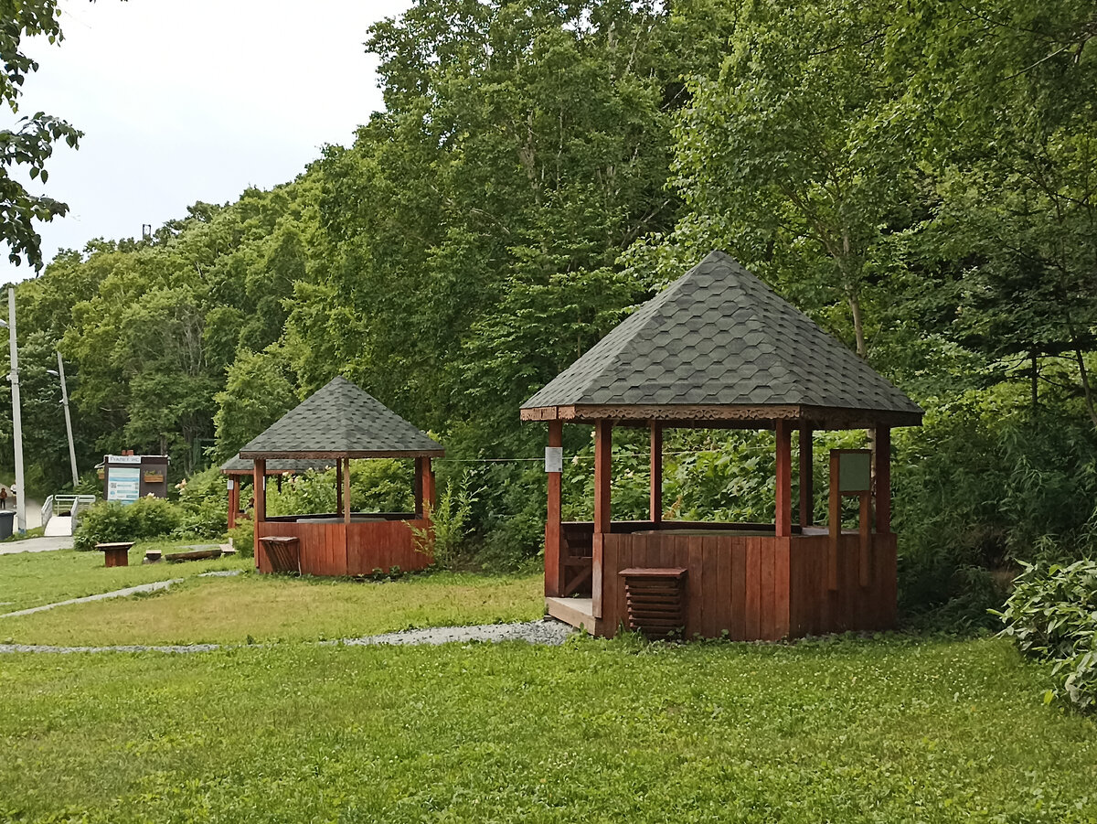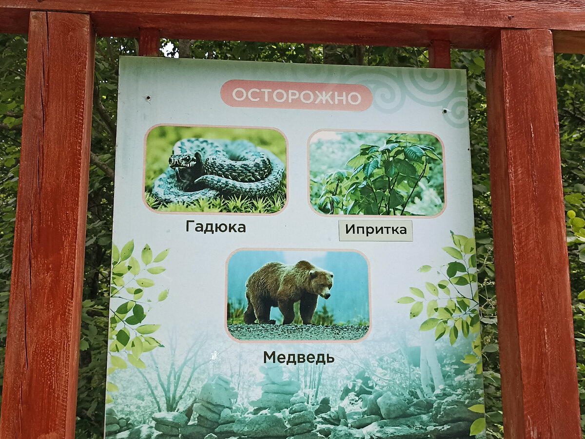 С прошлого раза произошли хорошие изменения: все деревянные конструкции (щиты, дорожки, домики) обработаны защитным средством, чтобы дерево не гнило, не елось короедами; установили камеры по маршруту, дополнительные информационные щиты. На фото ниже исправили ошибку в названии опасного сахалинского растения)) Если пройдёте по ссылке в начале статьи, то увидите на фотографии, как раньше было написано слово Ипритка.