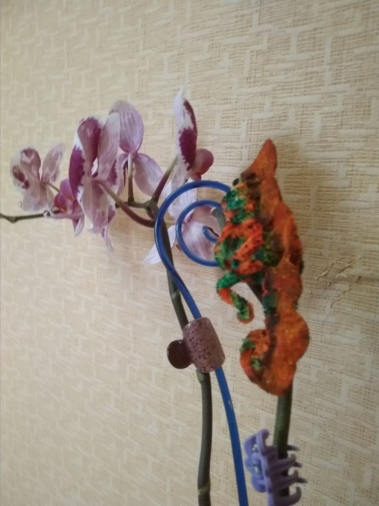 На орхидеях смотрится гармонично (хоть эта орхидея и не в тон камуфляжа, увы!)
