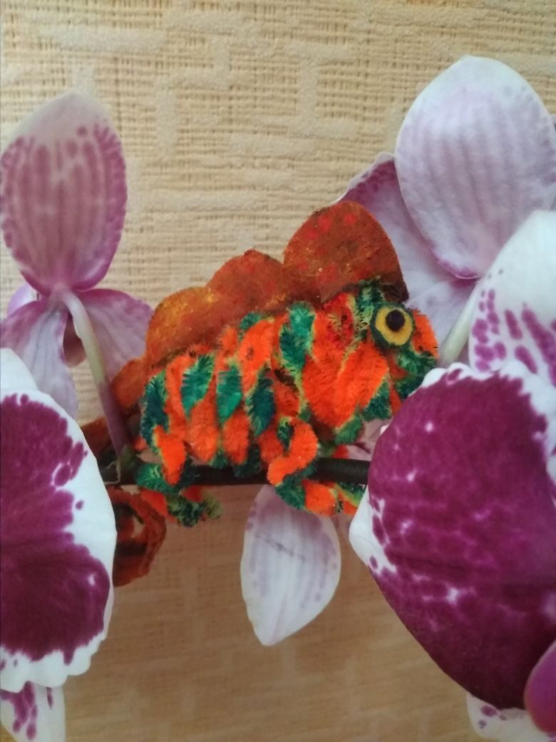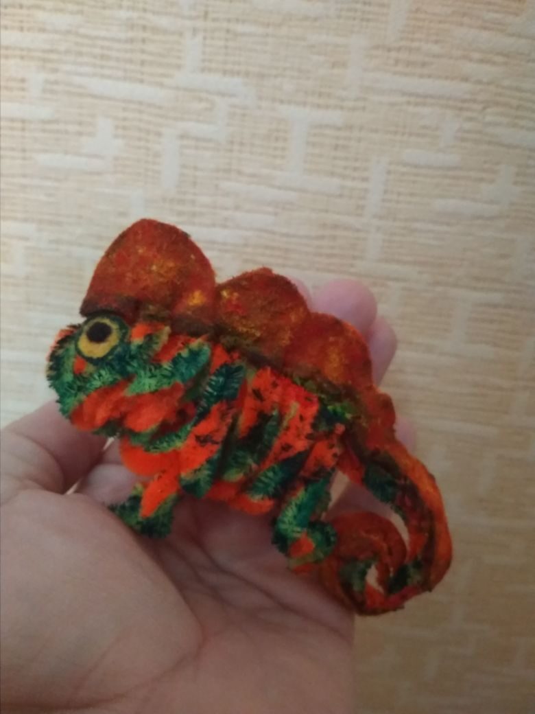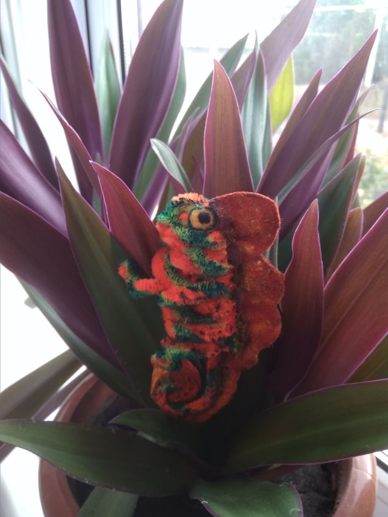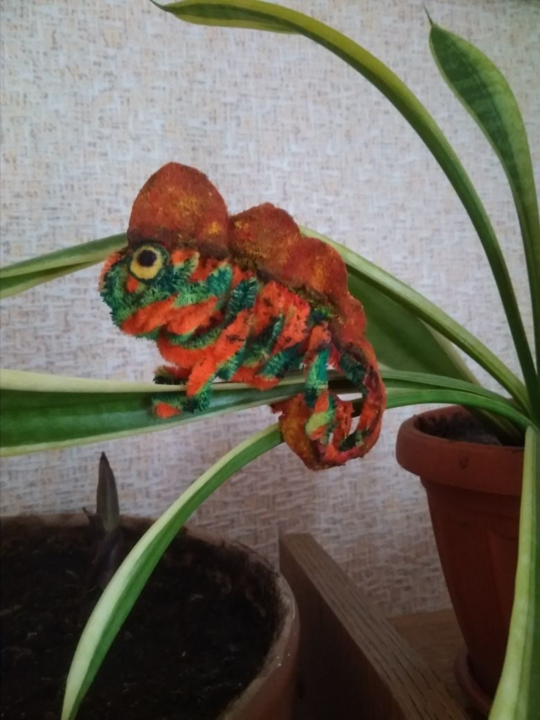Взгляд ватного дракона — казалось бы бред, но нет, у него и вправду взгляд! А у хамелеона совсем другой! И это здорово! Галина, есть отличные находки -чешуя из пайеток, синелька скрученная, я просто диву даюсь!