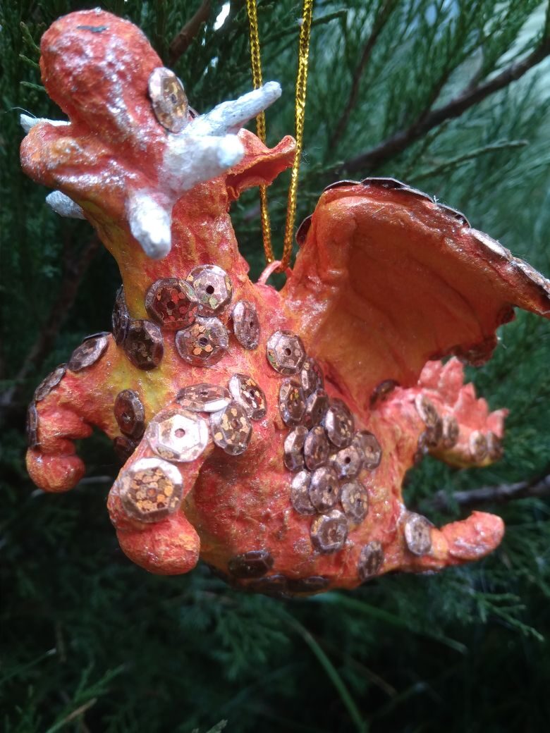 Наташа, спасибо огромное! Пайетки сама придумала на вату лепить (уже на сухую-крашеную, конечно). А вот из синели в интернете насмотрелась драконов — такая умопомрачительная красота! Захотелось попробовать, а в запасах немного синели разноцветной-полосатой. Пришлось красить.
