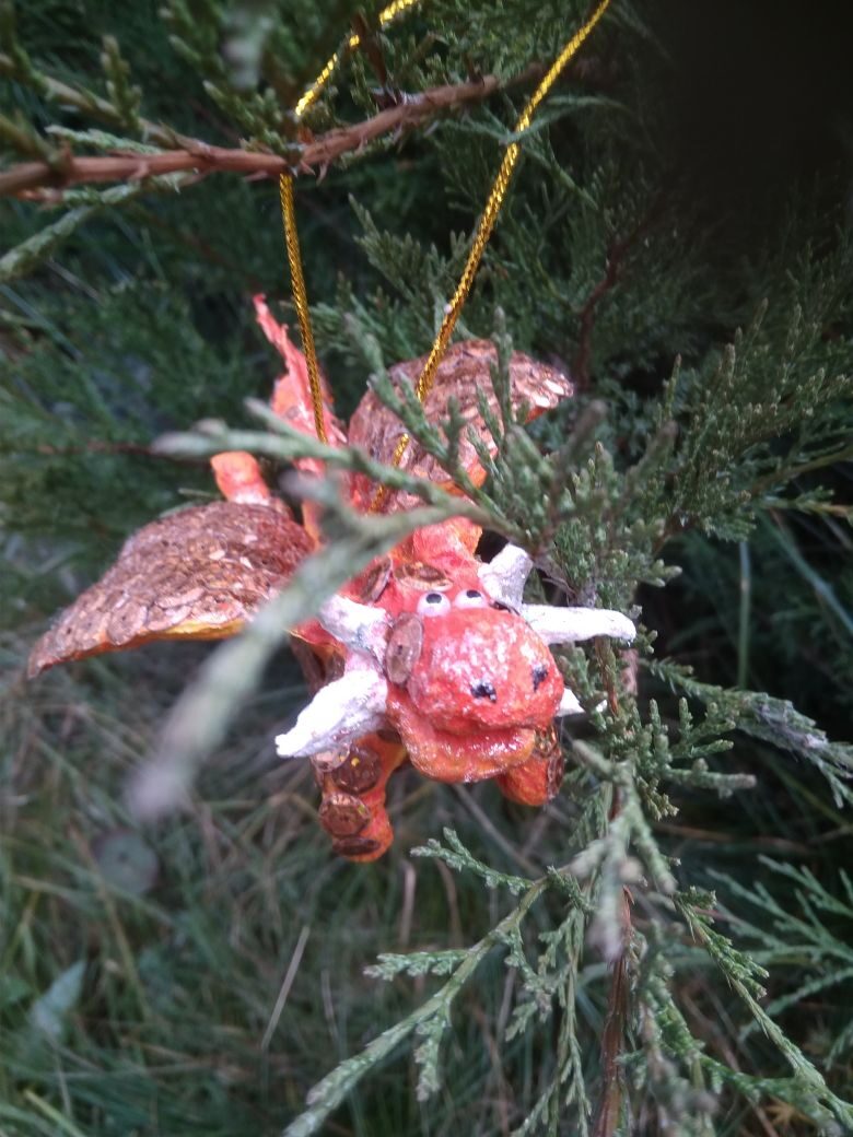 Дракон Вата - из ваты, конечно. На ёлку. Позируем на можжевельнике.