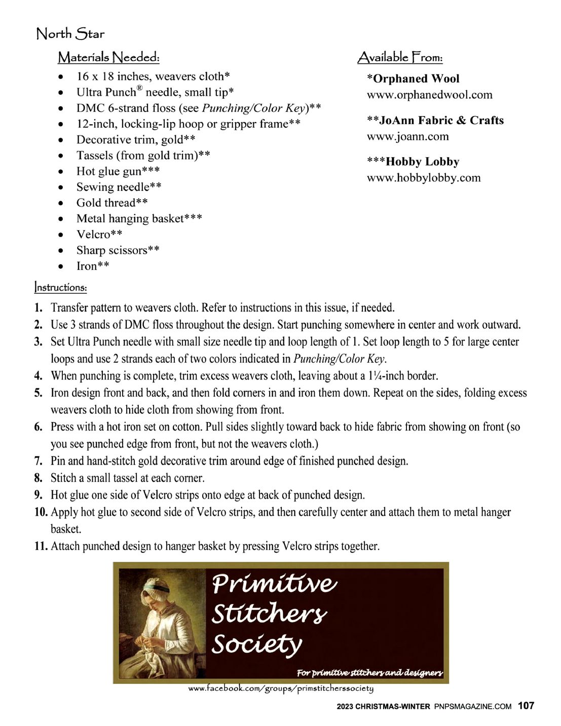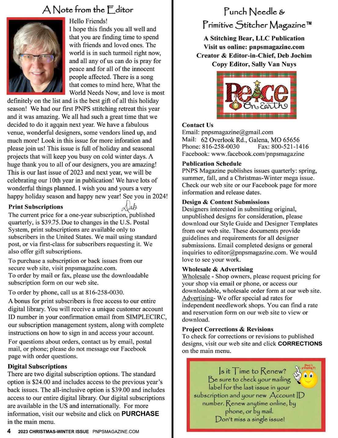 Коллекция вышивки в журнале «Punch Needle & Primitive Stitcher - Winter 20233»