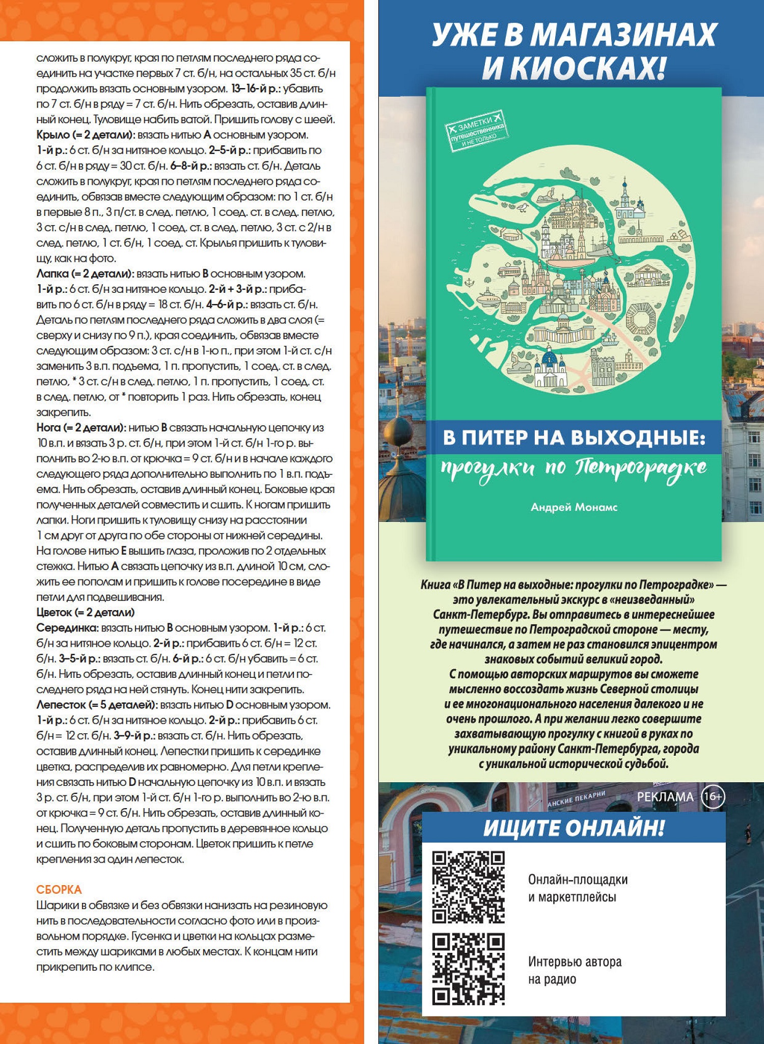 Популярный журнал по рукоделию. В каждом номере журнала собраны уникальные проекты, выполненные в разных техниках - вязание крючком, спицами, вышивка, украшения из бисера, пэчворк и другие.