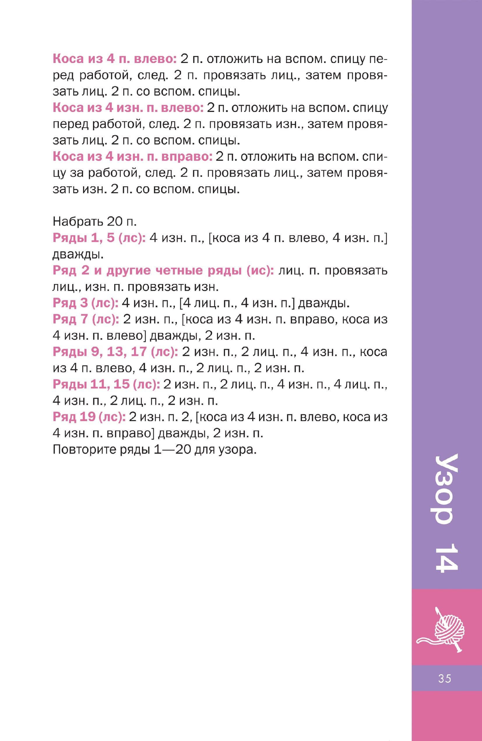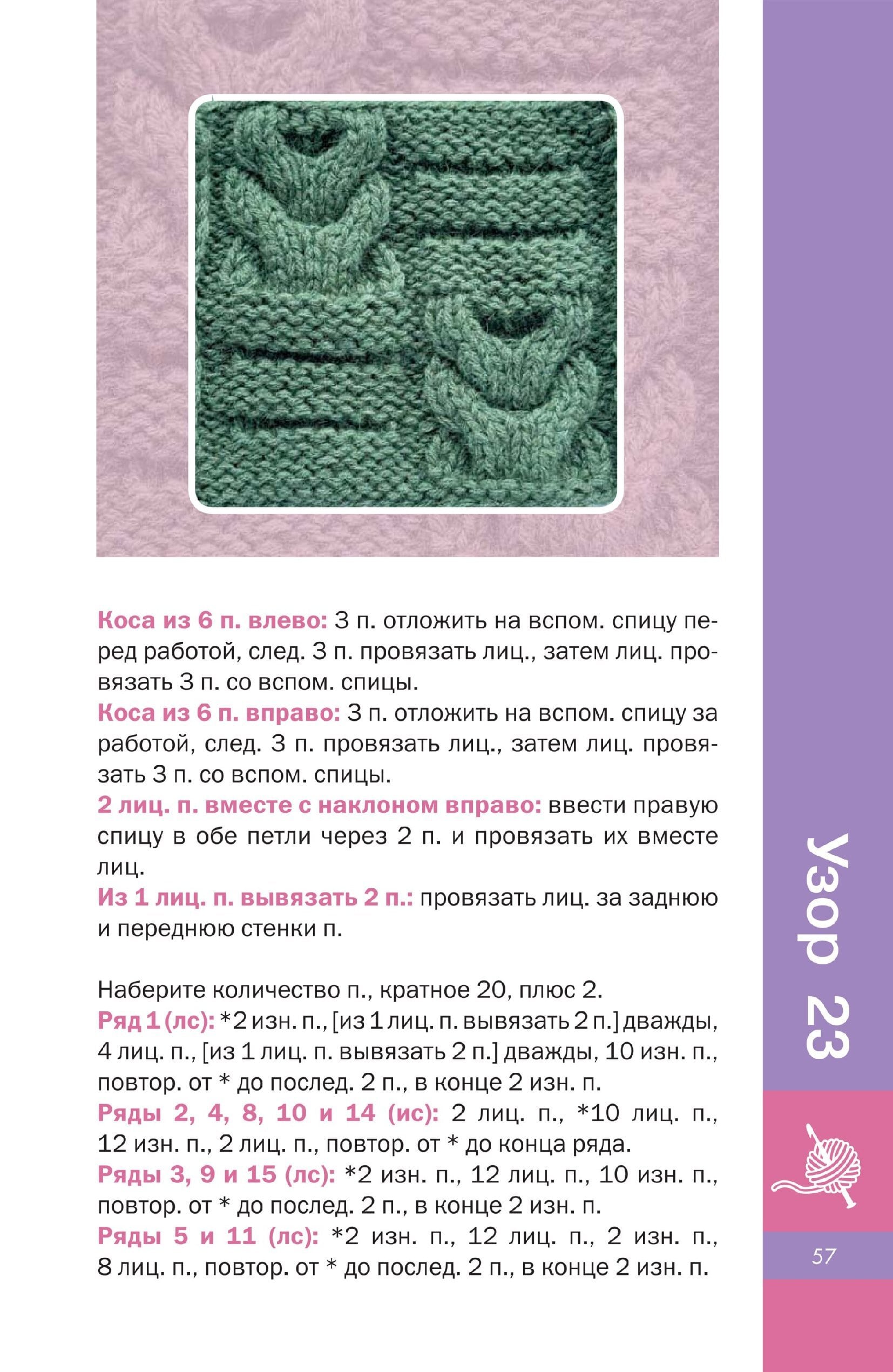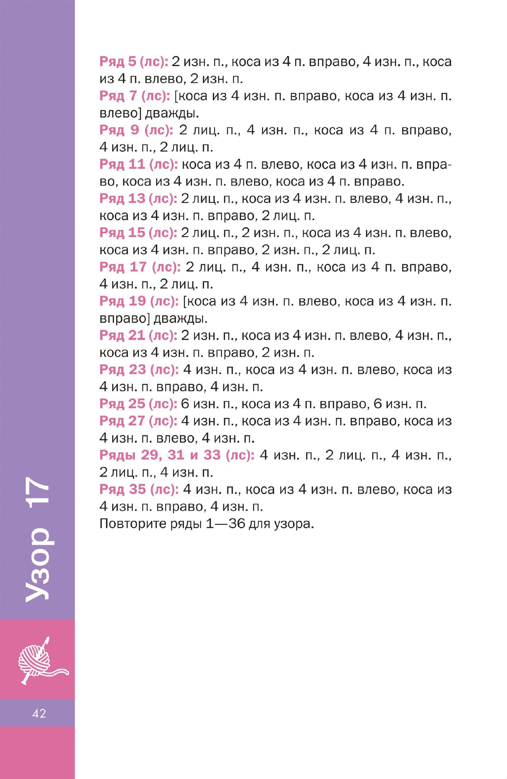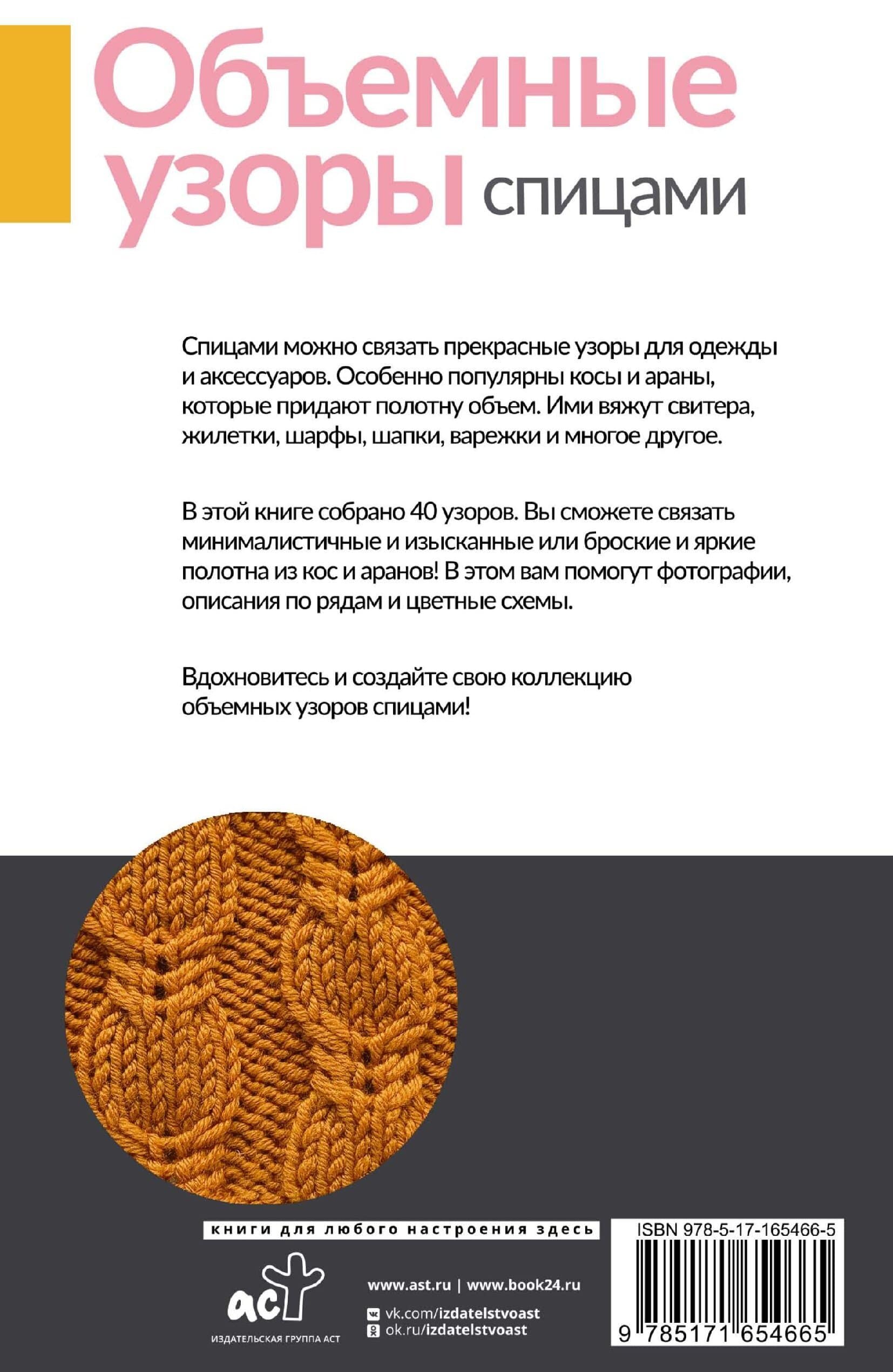 В этой книге представлено 40 объемных узоров для вязания спицами: косы и араны. Для каждого узора есть фотография, схема, описание по рядам, условные обозначения и инструкции по вязанию отдельных элементов. Вяжите спицами одежду, аксессуары и предметы декора!