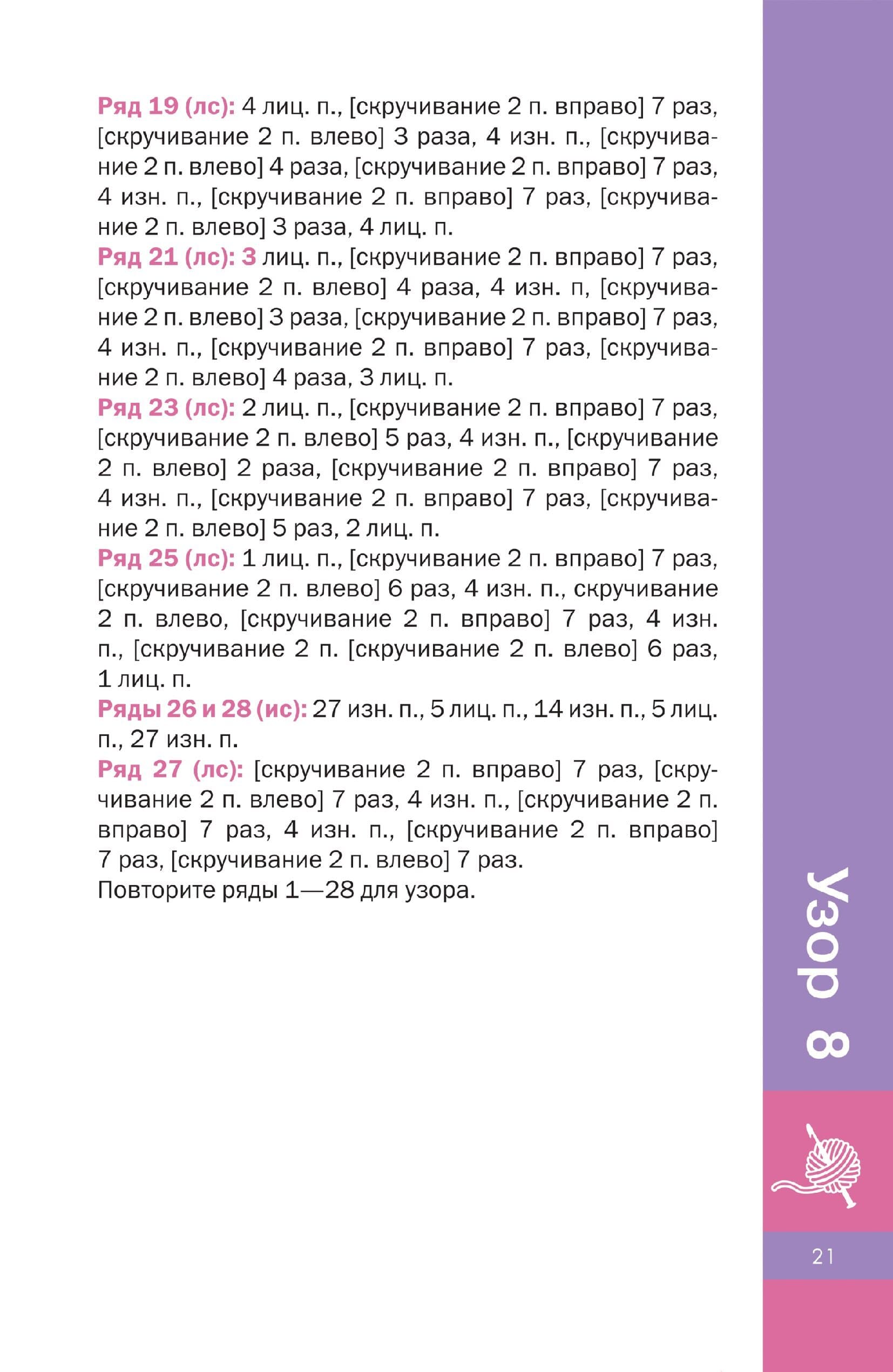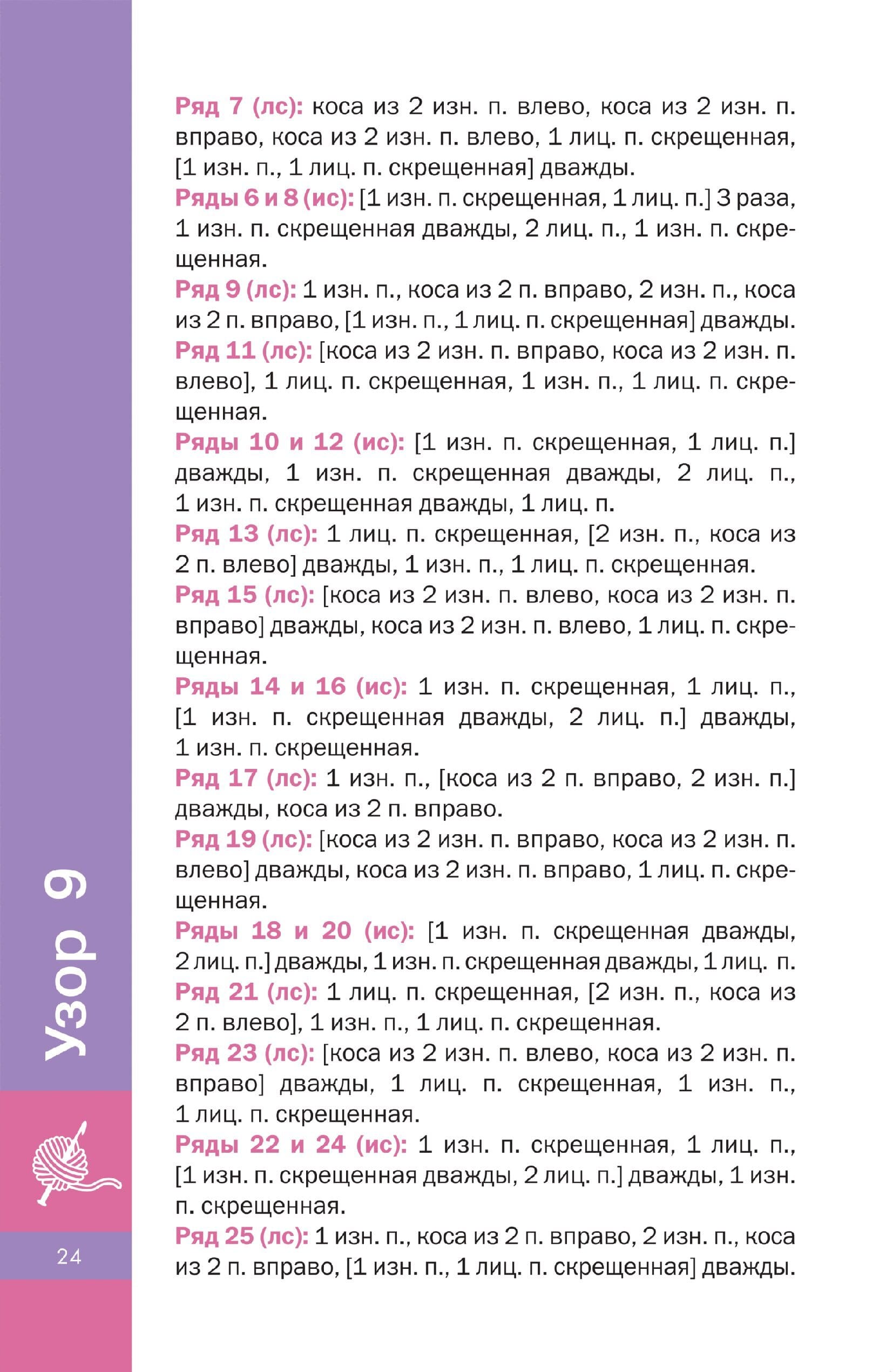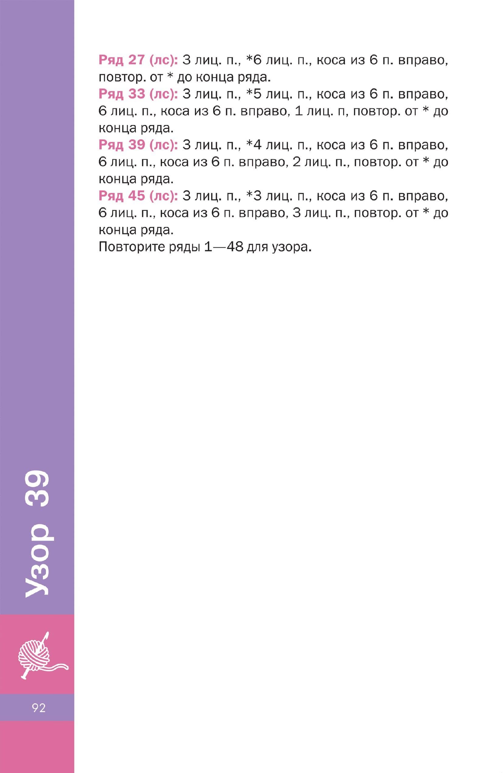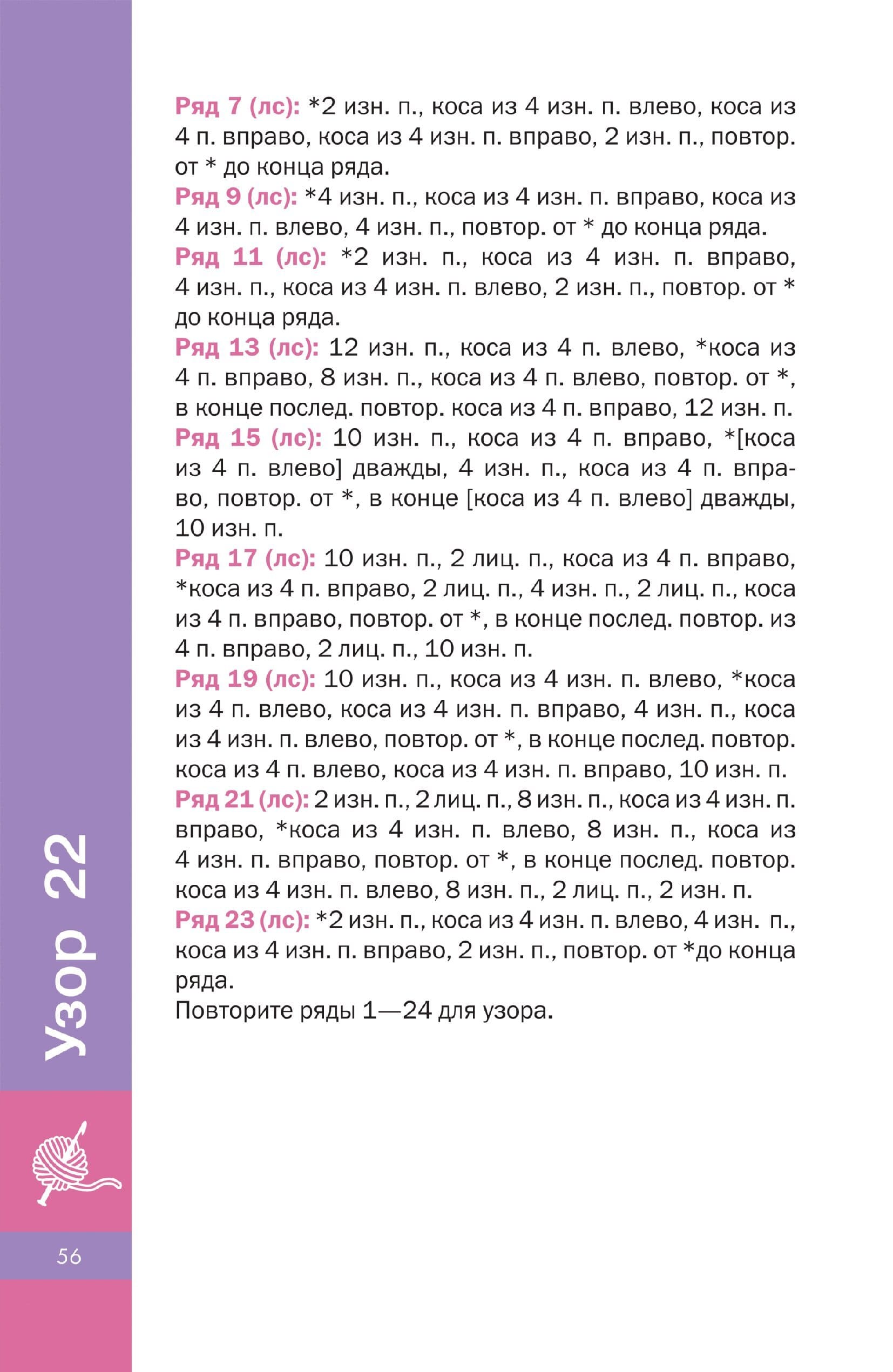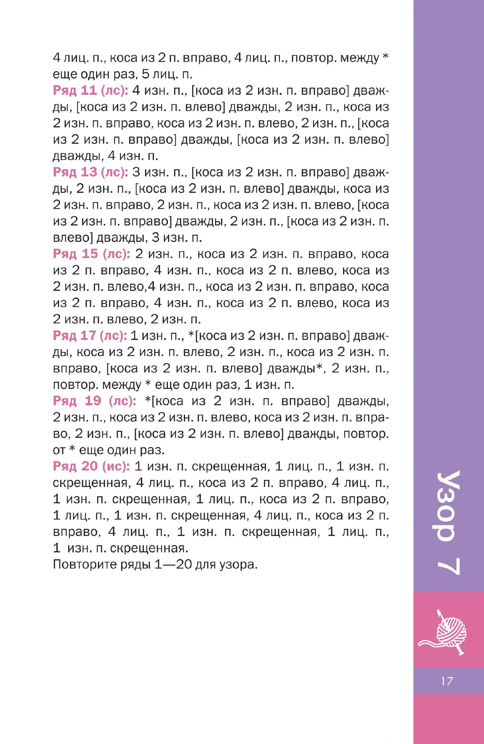 В этой книге представлено 40 объемных узоров для вязания спицами: косы и араны. Для каждого узора есть фотография, схема, описание по рядам, условные обозначения и инструкции по вязанию отдельных элементов. Вяжите спицами одежду, аксессуары и предметы декора!