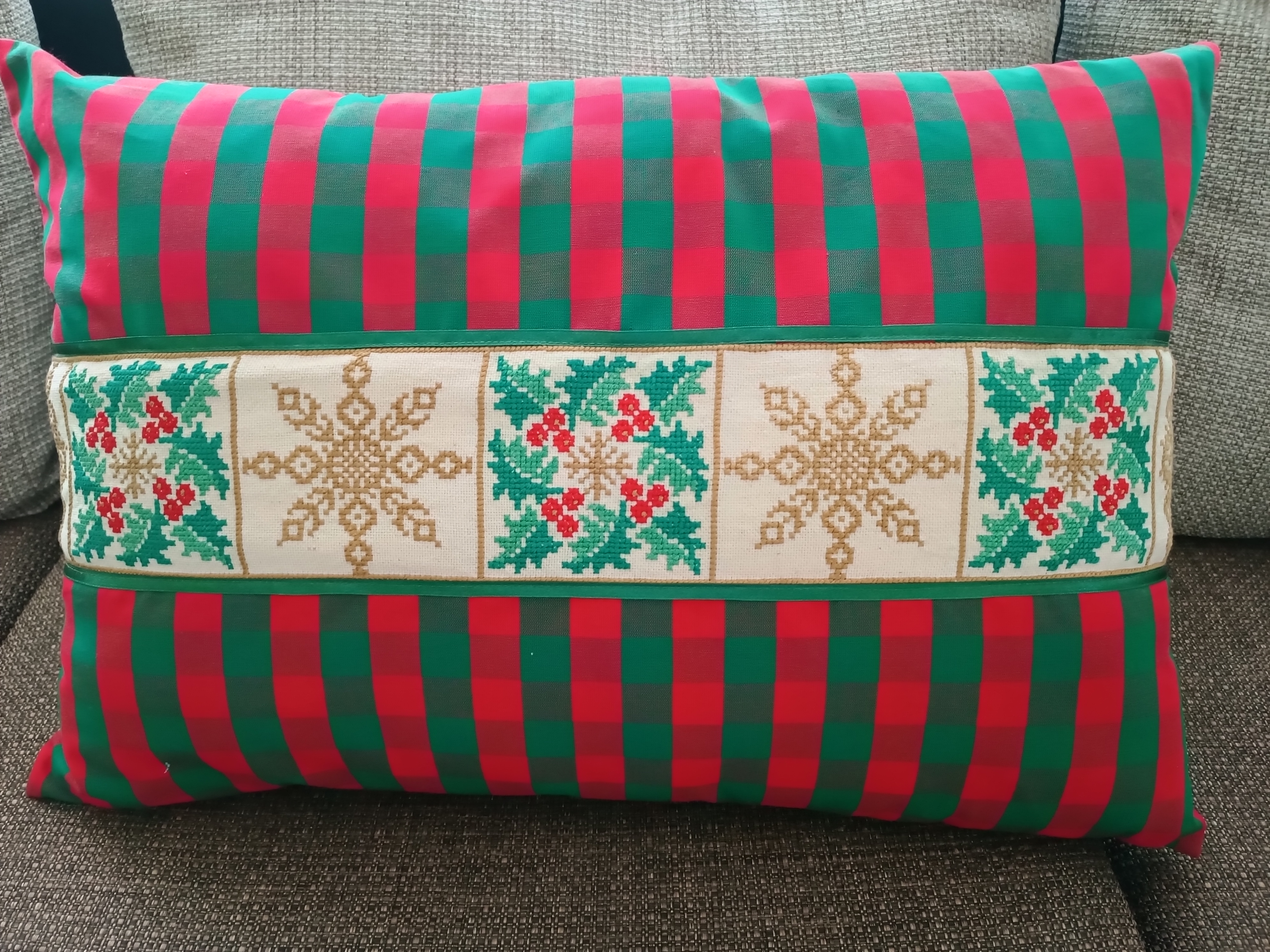 Вышивка-панно Рождественский вечер. Окантовка тоже в лоскутной технике. Вышивка крестом.