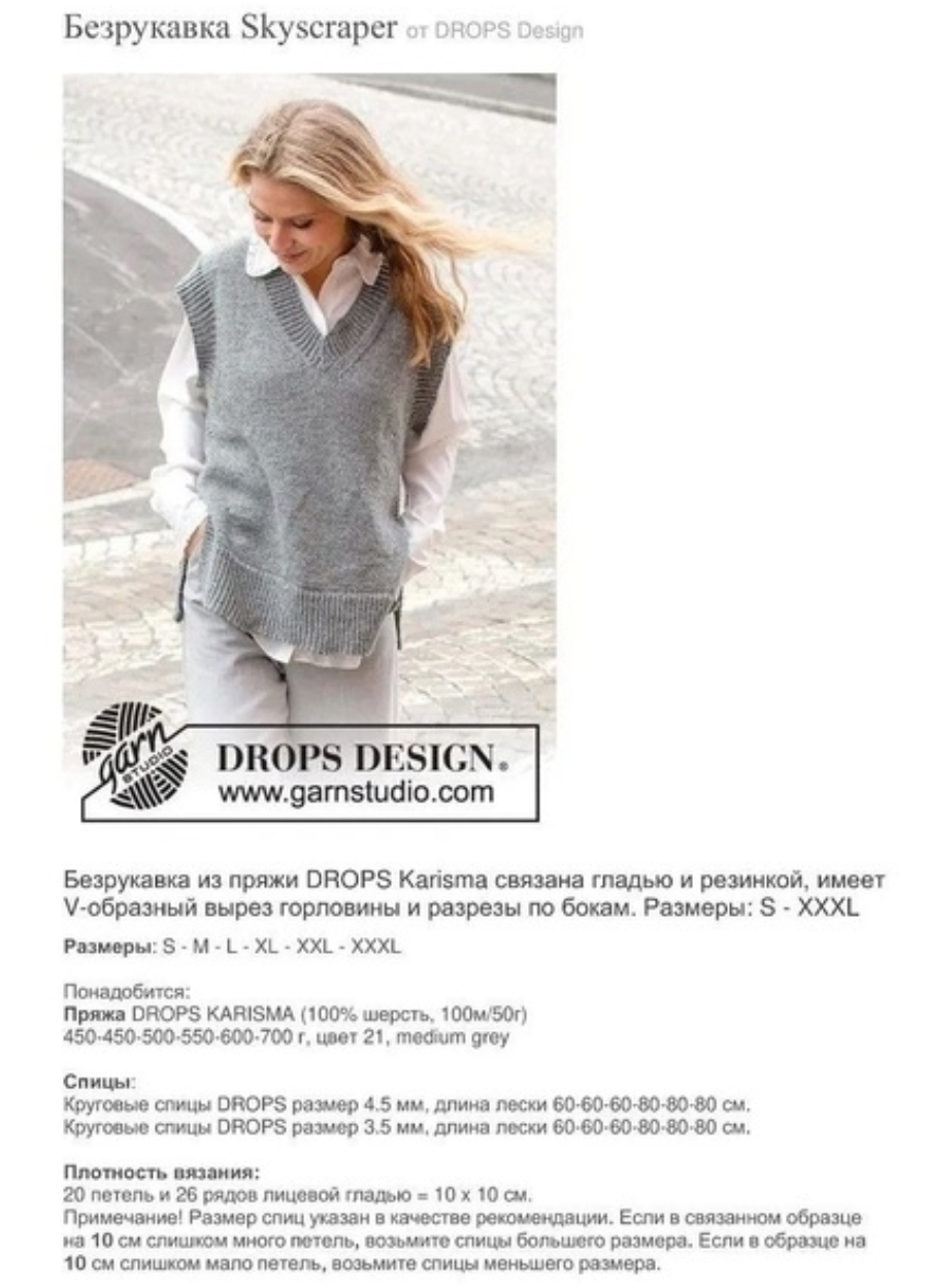 Примечание! Размер спиц указан в качестве рекомендации. Если в связанном образце на 10 см слишком много петель, возьмите спицы большего размера. Если в образце на 10 см слишком мало петель, возьмите спицы меньшего размера.