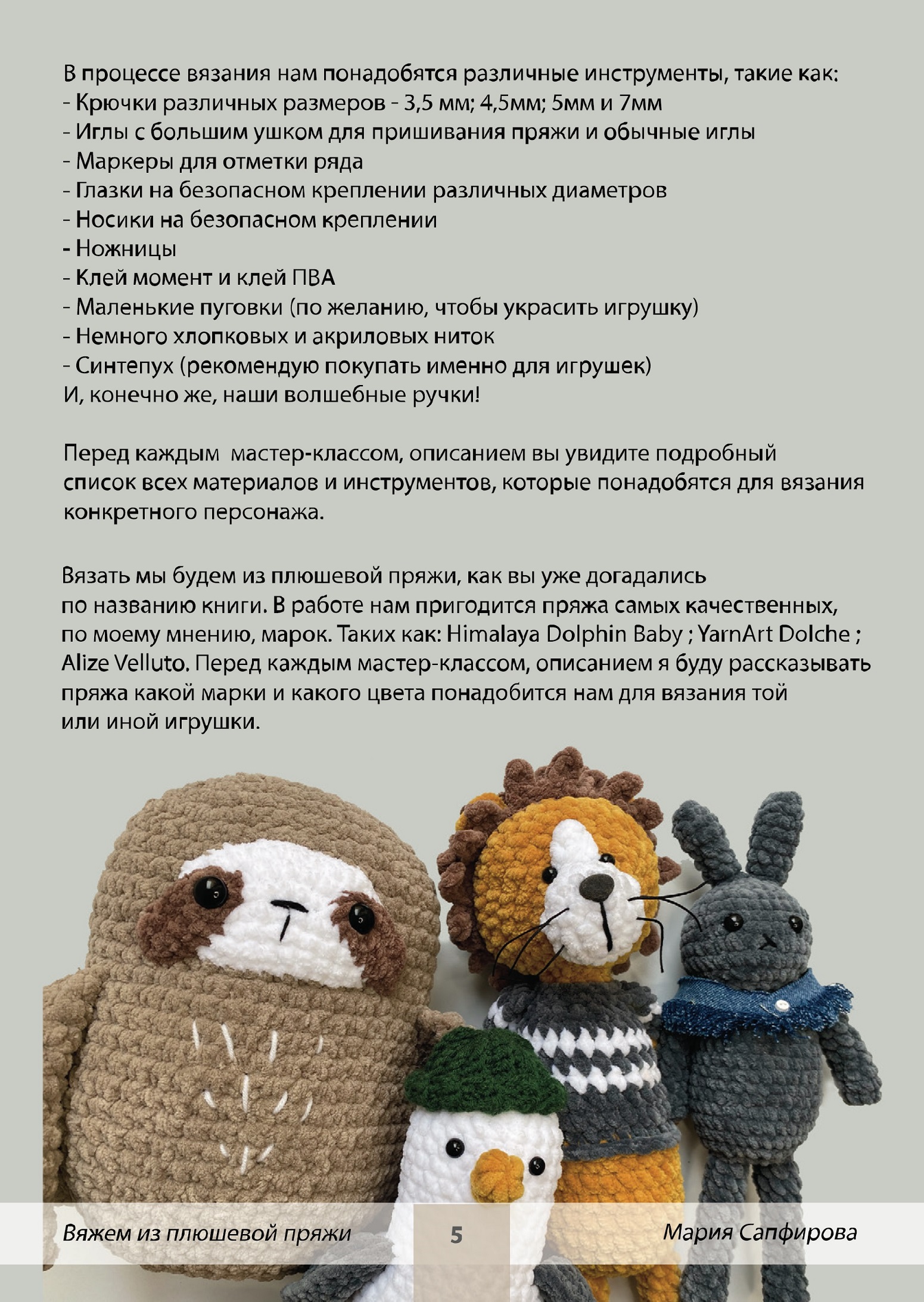 Мини-книга «Вяжем из плюшевой пряжи» - это совершенно новый формат. Никакой «воды», только понятные и подробные описания по вязанию игрушек из плюшевой пряжи крючком, сопровождается видео мастер-классом и фотографиями.