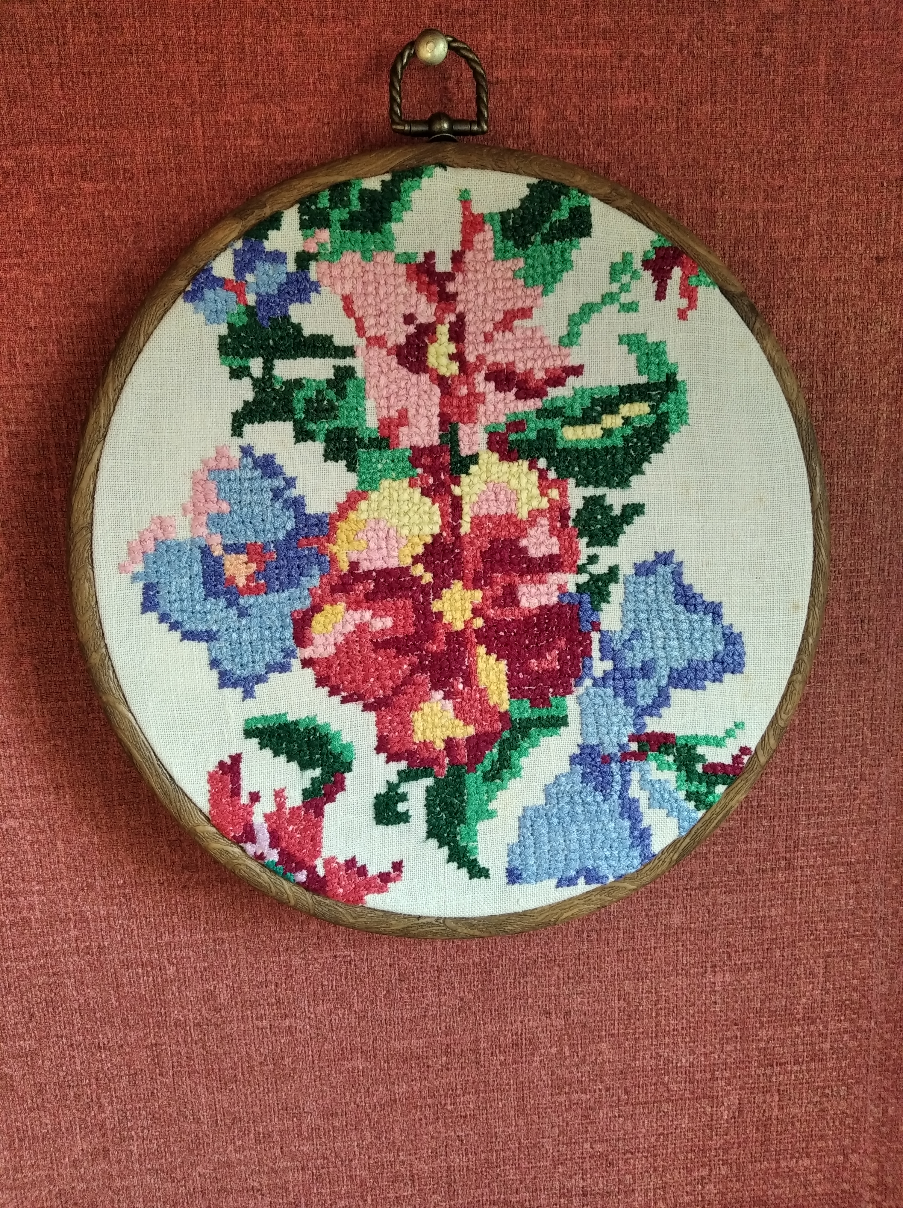 А это дорожка, вышитая крестом (болгарским). Ее элемент, наименее пострадавший от времени, стал таким панно.