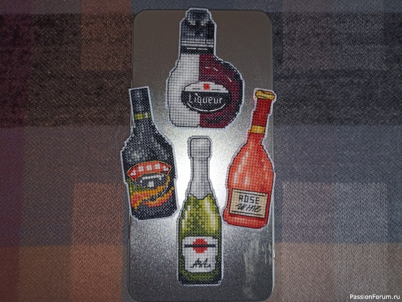 В итоге по набору вышила четыре бутылочки: шампанское, розовое вино, ликёр, ром.