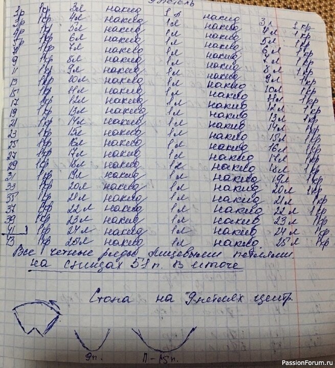13 ряд : 1кр.,9л.,накид,1л..накид,9л.,1кр.
