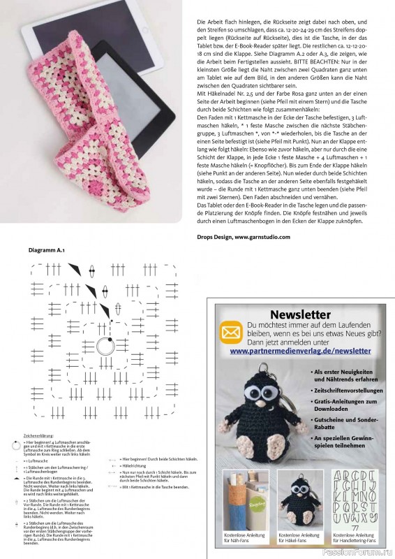 Немецкий журнал «Hakeln Sonderheft» предлагает проекты для вязания крючком. Здесь вы найдете вязаные изделия разного плана – игрушки, пледы, накидки, шали, корзинки для рукоделия и много других полезных вещей для комфорта и уюта вашего дома. К каждой модели даны выкройки и инструкции.