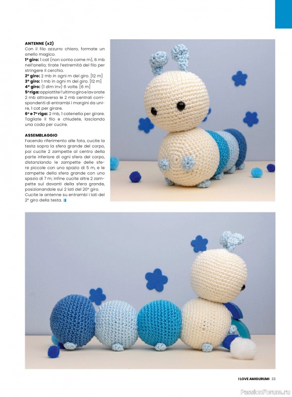 Итальянский журнал "I Love Amigurumi" предлагает проекты для вязания крючком игрушек амигуруми. Амигурумчики украсят вашу жизнь и послужат отличным подарком для родных и близких, ведь связанные вручную, они несут добрую энергетику.