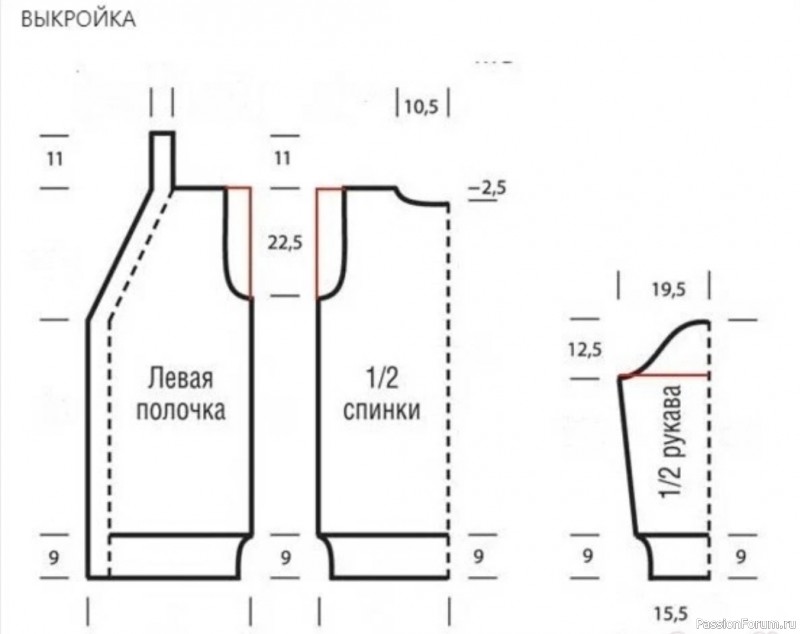 Закрыть петли плеч на высоте спинки, а 12 п. планки вязать в высоту 11 см.