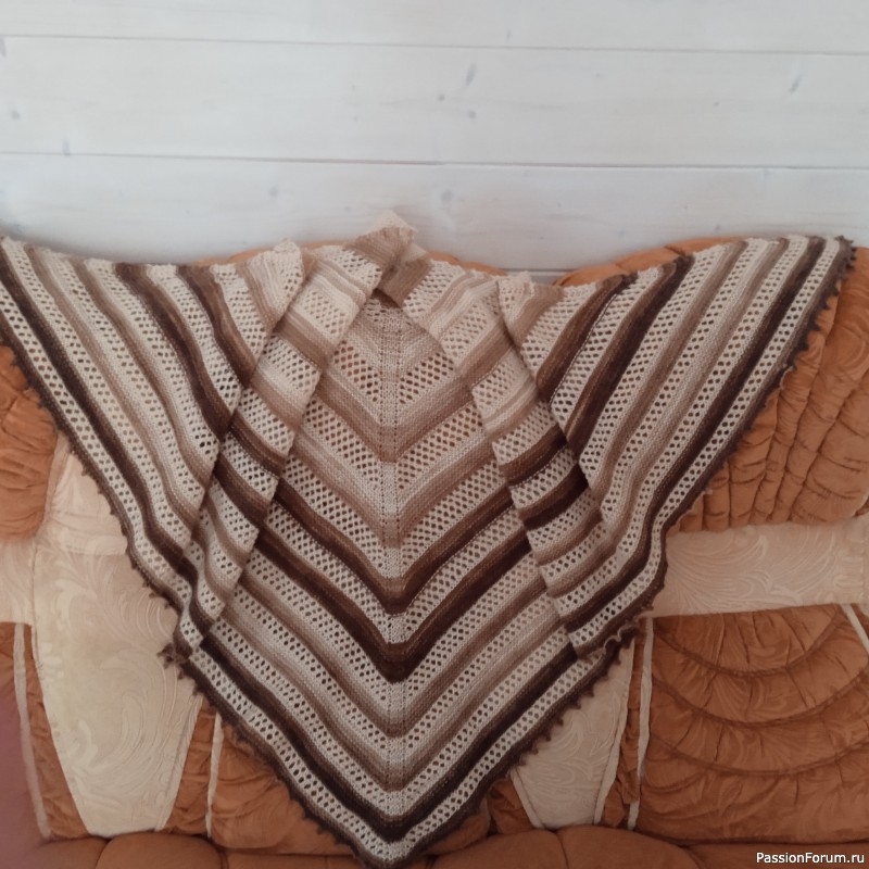 А у меня в декабре- январе в перерывах между ажурными шалями связалась шаль «Полосатик» (автор Светлана Семенкова).