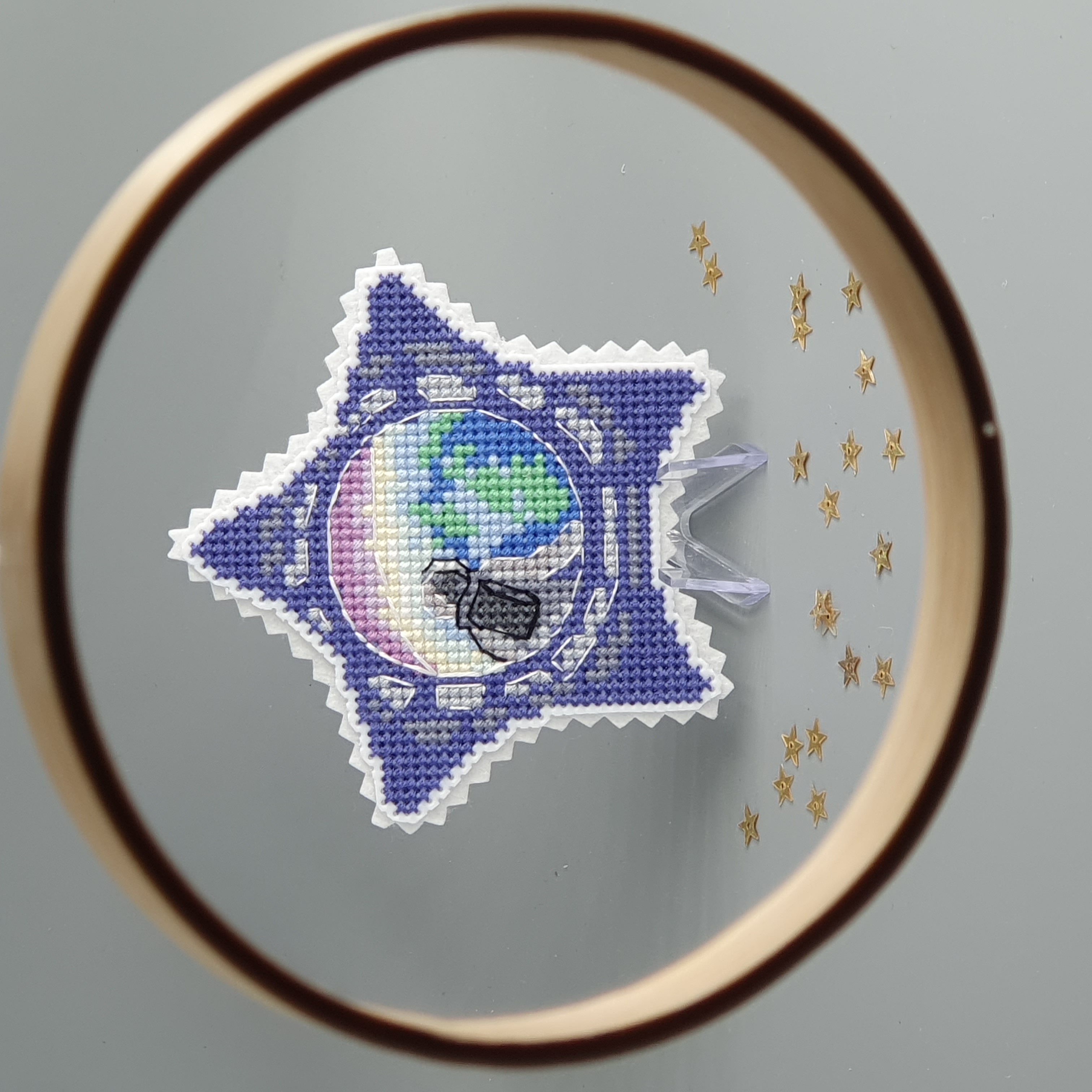 А вот изнанку редко красиво кто оформляет. А у вас все сошлось: звездочки и фетр, вырезанный уголками. Я и края всегда обрабатываю, не оставляя просто обрезанными. ( это исключительно мой бзик). А у вас хорошо получилось, будто две рамочки.
