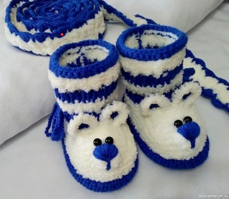 Использована пряжа «Пехорка» «Детская новинка» (200 метров в 50 г) в 2 нити и плюшевая пряжа «Alize Softy Baby Plus» (120 метров в 100 г).