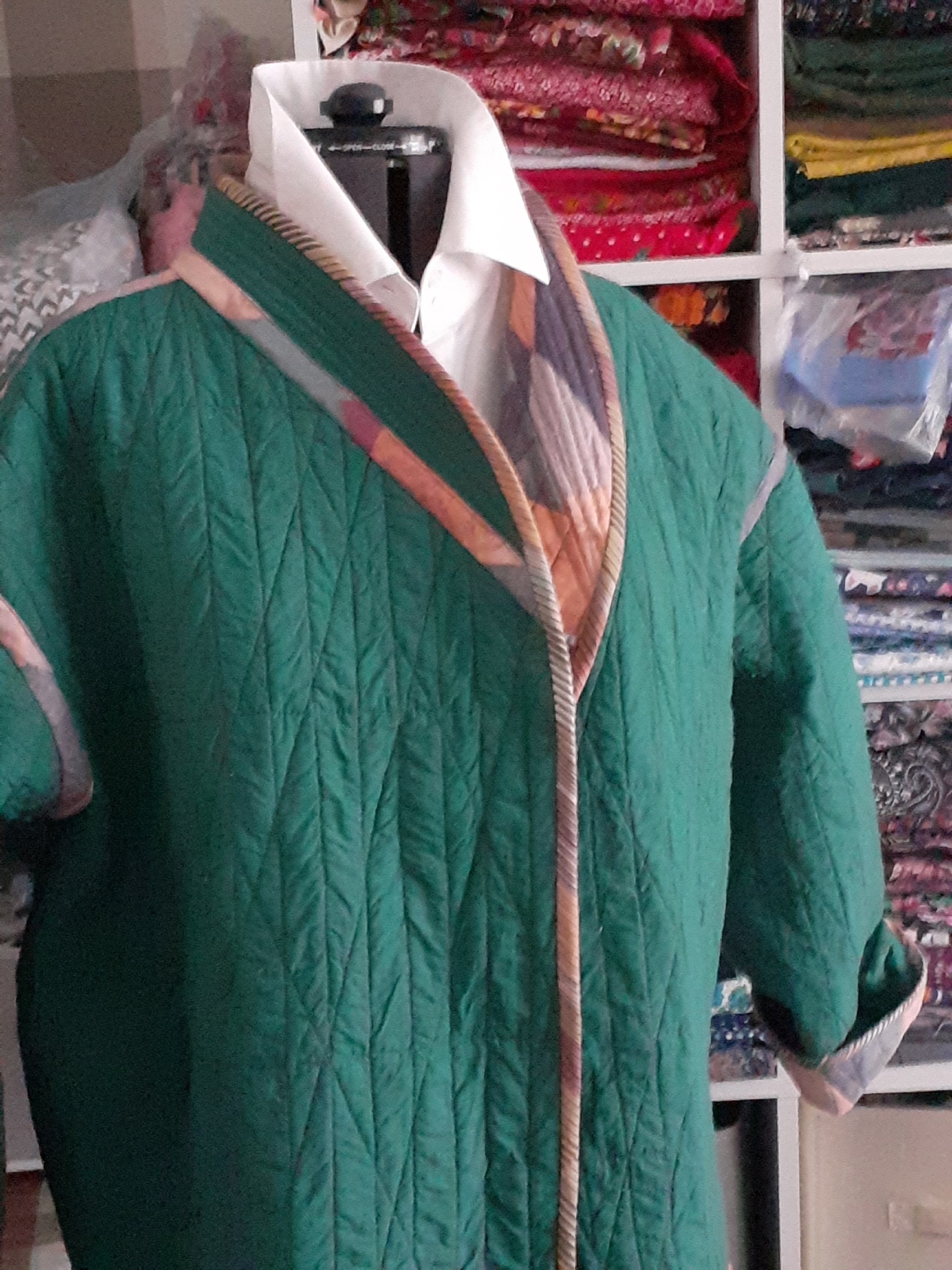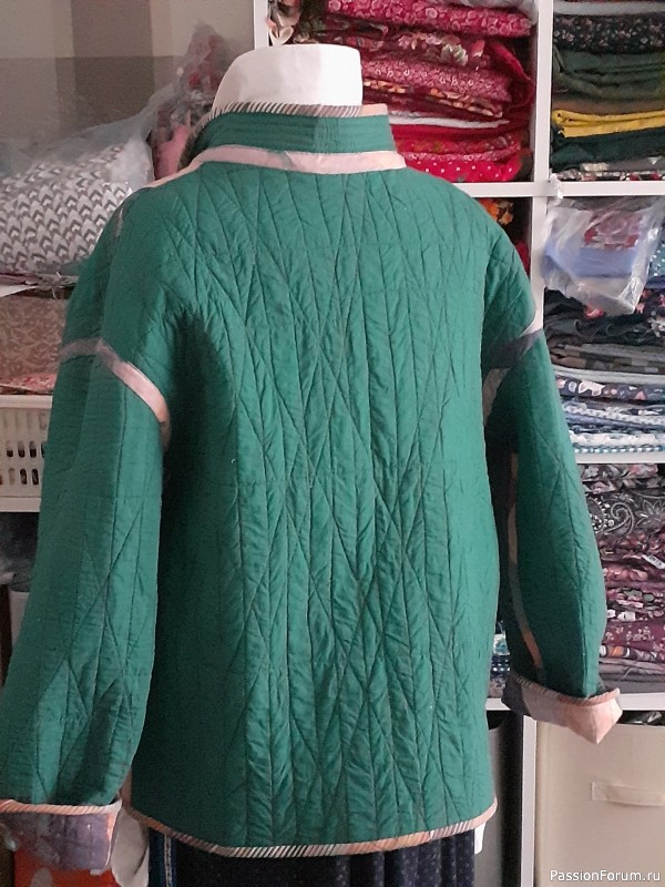 Ну и фуфайки, куда от них.. Очень понравились оттенки ткани, но резать -только портить. Решили так полотно сделать. Может , конечно, с зеленым активным подкладом надо было пораскинуть мозгами, но обратной дороги нет. Пуговицы - были как вариант , забраковали. А фото оставили))