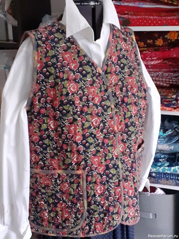 Какая отличная идея -наряд для огорода! Приветствую такую идею! А про фуфаечку не поняла, это рисунок ткани такой, как бы печворк? Подкладка интересная, мне понравилось)))