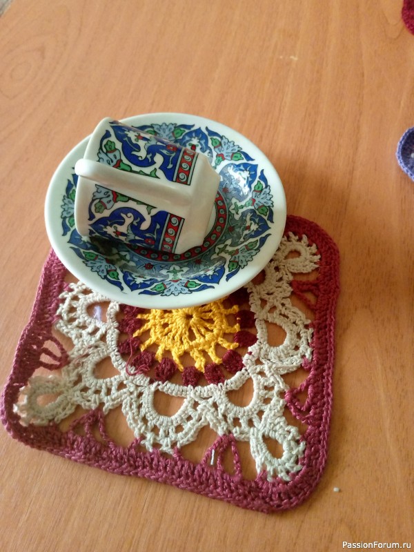 Салфетки связаны из хлопковых ниток разного цвета. Размер 14 х 14 см., цена 1200 руб. Цена указана за комплект. Можно приобрести любое количество из наличия.Работа готова к продаже. Доставка:самовывоз из Люберец, почта, СДЕК после предоплаты(цена+почт. расходы) на карту Сбербанка.