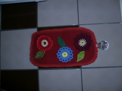 Вот несколько вариантов украшалок этими цветочками прихваток, игольниц, пинеток, на последнюю игольницу на крышечку осталось цветочек связать.