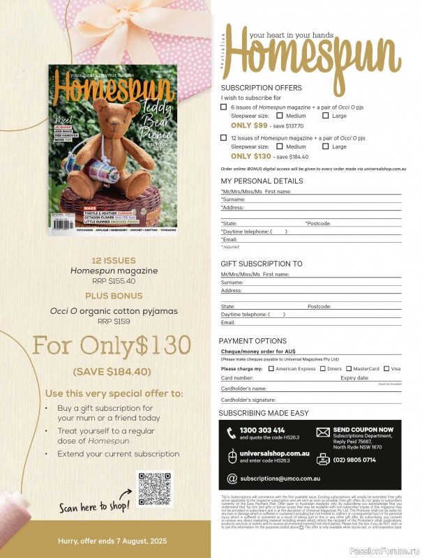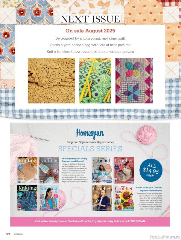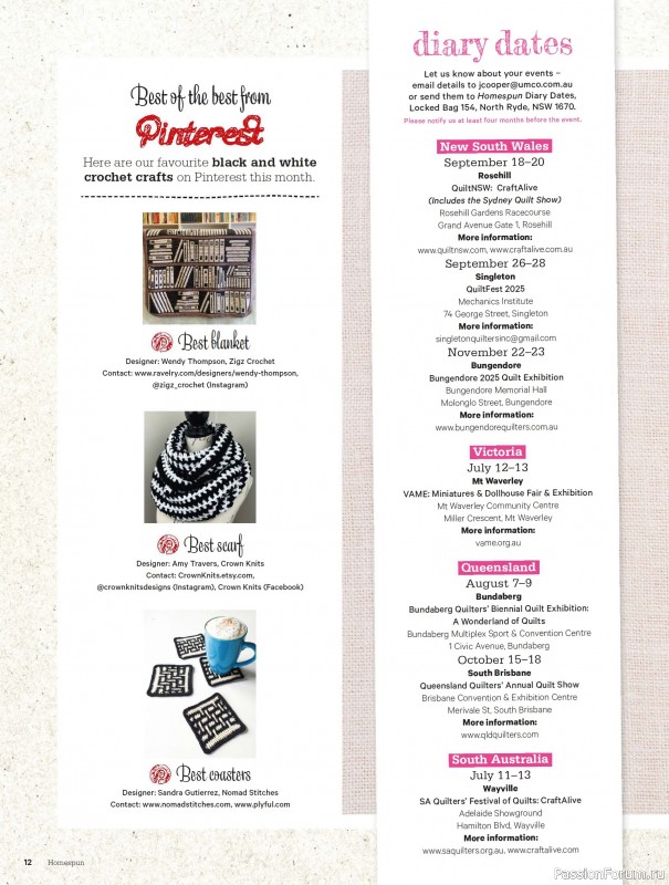 Коллекция проектов для рукодельниц в журнале «Australian Homespun №218 2025»