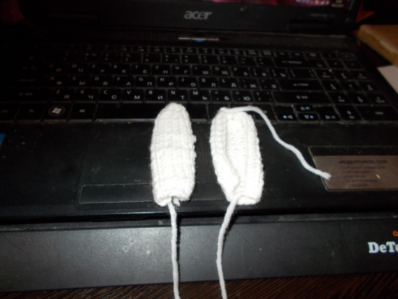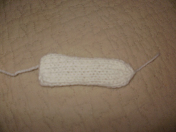 1 ряд: Используя белую нить, набрать 12 петель, и начиная с изн. ряда вязать лиц. гладью 20 рядов.