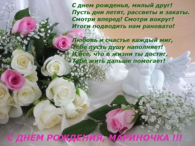 Разрешите и мне присоедениться. Мариночка! С днём рождения!!! Удачи во всём, исполнения задуманного! Здоровья тебе и твоим близким!!!