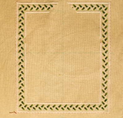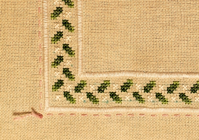 Перед началом вышивки,обрабатываем края ткани по периметру швом зиг-заг на машинке , в ручную, или промазываем клеем для ткани или ПВА.