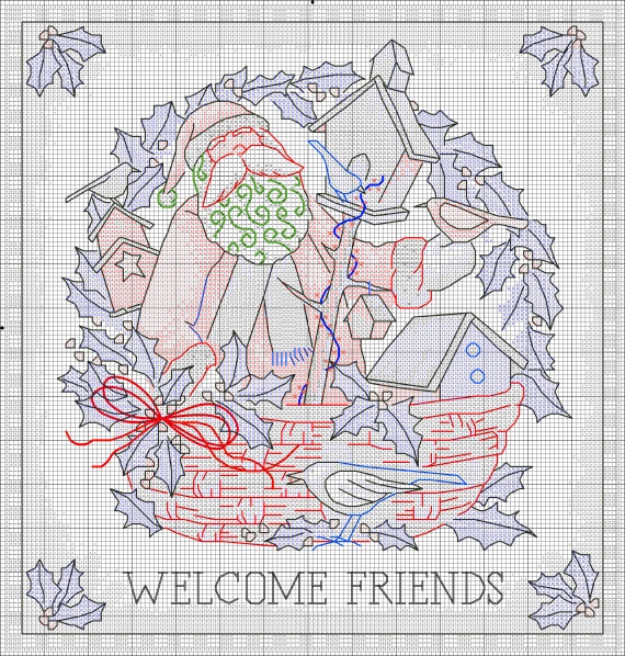 Теперь бантик на корзинке: вышиваем в 4 нити цветом 739.