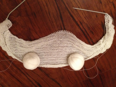 Первый этап совместного вязания шали Молоко и мёд, дизайнер Любовь Шальная