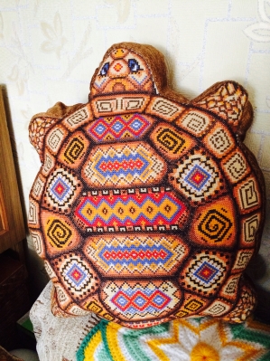 Вчера тоже выкладывала топик со своей подушкой. Девочки дали дельные советы, как сшить чехлы, чтоб смотрелись красивыми квадратами, а не «пропеллерами». Удачи в завершении сових подушек! Кстати, куда все денете?????
