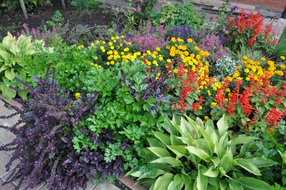 А рядом с многолетними цветами (пионы, флоксы) прекрасно чувствуют себя разные виды мяты )))