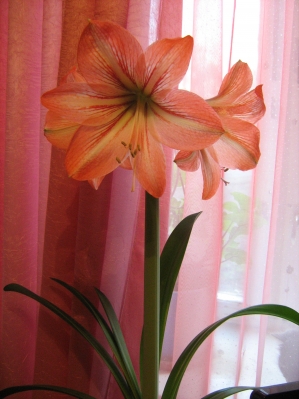 Надюша, цветок красавец!!! А вот мой. Есть несколько секретов что бы красавец зацвел!!! 1)сажают луковицу только на 2/3 в землю.2) вазон должен быть только на 1-2 см.шире луковицы.3)сначала выходит цветонос, только потом листья, поэтому: пока цветет не надо удобрять, а когда отцветет- подкармливайте.4)в сентябре принудительно «усыпляете» красавца- НЕ ПОЛИВАТ!!! ждите пока отомрут листья 5)уберите вазон в прохладное место-НЕ ПОЛИВАТЬ! 6) изредка, посматривайте, как только начнет расти цветонос, ставте свой красавец на свет и начните поливать!!! Удачи!!!