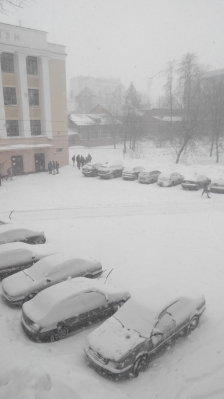 Приехала на работу в 8.30, а в 9.00 уже замело всё. Снег валит и валит, вьюжит. Грустно. Только красотой на нашем сайте и спасаемся