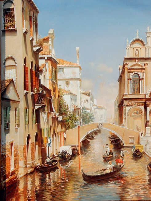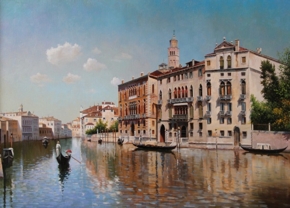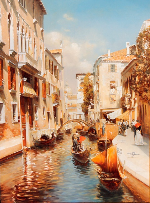 Венеция — потрясающий город! И художник так красиво его показал, так и хочется прыгнуть в гондолу и прокатиться по городу. Мне очень нравится вода на этих картинах, так натурально она выглядит.