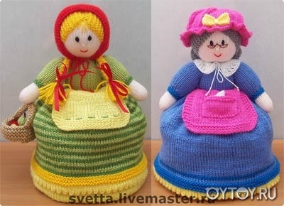 Кукла-перевертыш — это особая игровая народная куколка. Она отличается тем, что в 1 куколке сразу 2 персонажа. Сверху один, перевернешь — будет другой. Вот например куколка Бабушка превращается в куколку Красную шапочку.