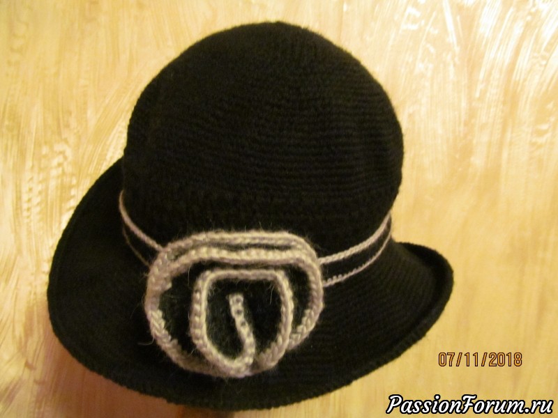 Шляпка связана из пряжи "Подмосковная"из Троицка: 50% шерсть, 50 % акрил; 200 м/80г черного цвета. Для отделки использовала остатки пряжи от того же производителя серого цвета. Крючок № 2,5 и для ввязывания ригелина по краю полей крючок Кловер № 2,25 Начало вязания - донышко: кольцо амигуруми 6 ст. б/н в кольцо; 1 вп для подъема по 2 ст б/н в каждый ст б/н предыдущего кругового ряда начало кругового ряда помечаем маркером или тем, что у нас под рукой :))) далее делаем прибавки ...