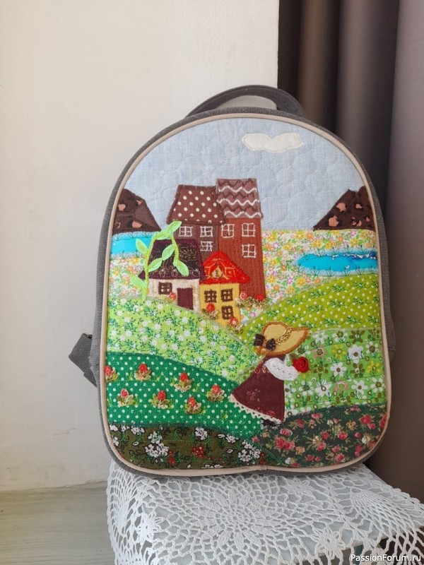 Приветствую всех рукодельниц и предлагаю посмотреть сумочку размером 40 х 35 см. , сшитую в стиле "пицца". От предыдущих проектов у меня осталась кучка обрезков и я решила сшить из них полотно в стиле "пицца", а заодно и потренироваться в свободно ходовой стежке. Когда обрезки были разложены, получилось красивое и яркое поле. Поняв, что на нём чего то не хватает, я добавила ярких жёлтых листьев. Результат меня устроил. Чтобы полотно не лежало без дела, было принято решение сшить летнюю сумочку. Сумоч...