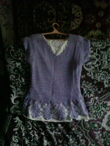 Одна из любимых кофточек.Связана из венгерского шелка.Состав не помню. Оригиналом служила кофточка из журнала "Маленькая Диана"Правда я ее изменила.Показалось,что оригинал очень молодежный.