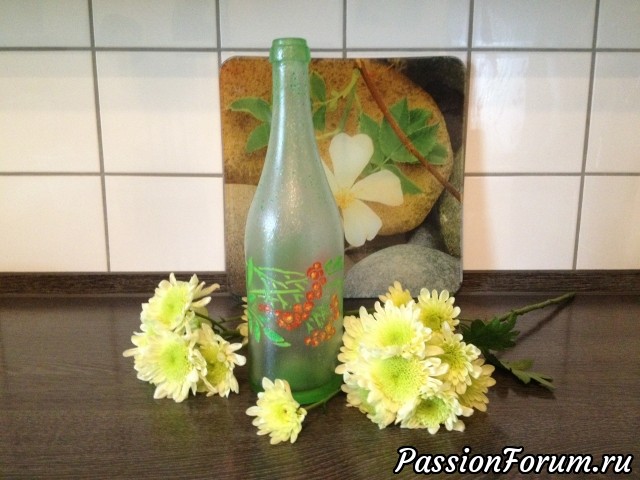" Ветка рябины " Декупаж тонированной бутылочки.
