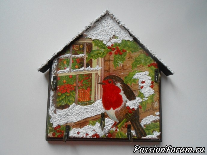 Всем здравствуйте. Очень давно не была на своем любимом форуме. Первое что хотелось бы сделать - это поздравить всех с прошедшими праздниками и пожелать всем здоровья, благополучия и долголетия. А теперь позвольте представить Вам свои новые работы, которые успела за это время сделать. Первая работа - это ключница на дачу. Надоело, что все ключи по баночкам, по карманам и вечно ходишь, ищешь. Теперь будут все висеть на месте.