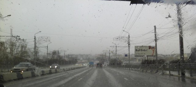 Красноярск. 2 мая. Снег, перемежающийся дождем, туман над Енисеем такой, что когда заезжаешь на новый, недавно построенный мост через реку, чувствуешь себя буквально ежиком в тумане. А на газоне рядом с домом сквозь снег пробиваются первые цветы.