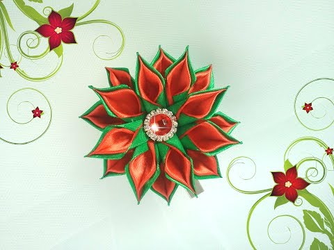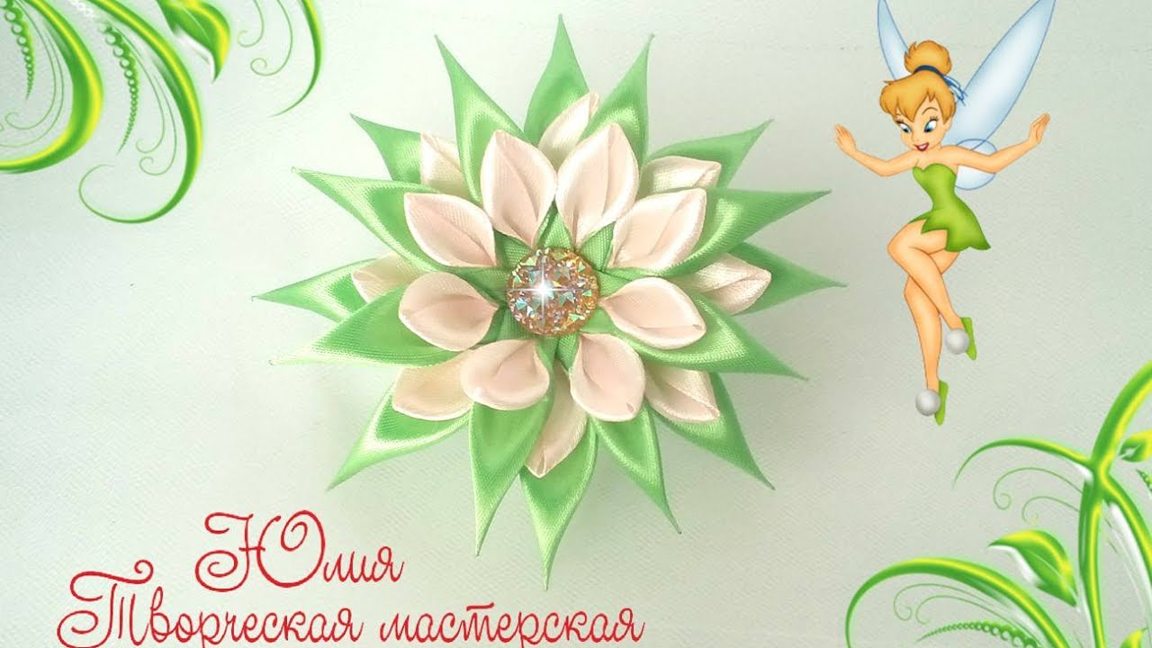 Цветок канзаши с двойными лепестками из лент 2,5 см и 1 см. Мастер-класс