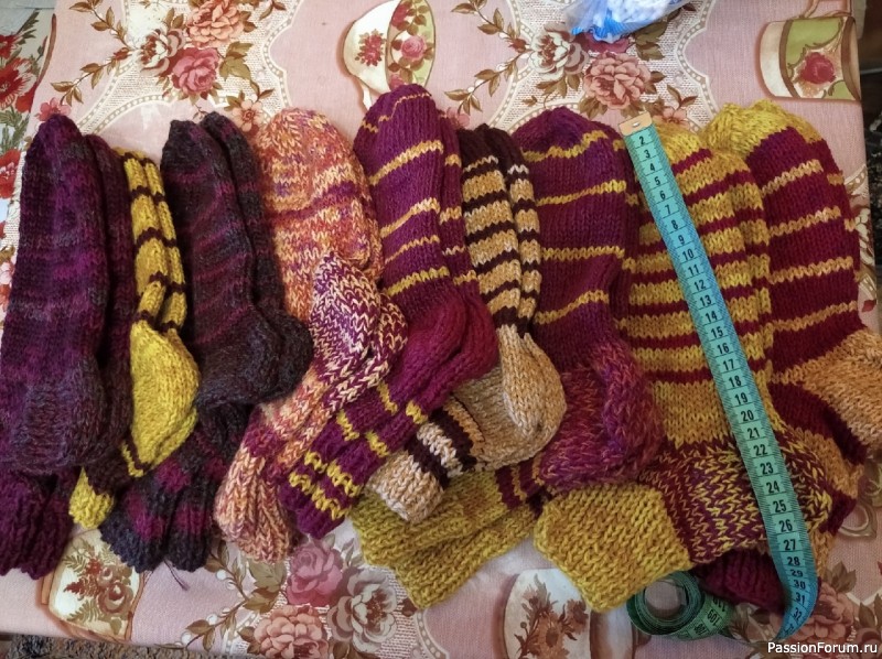 Связаны 9 пар теплых носочков из пряжи присланной мне в дар. Продолжаю вязать бесплатно для пожилых находящихся в социальных заведениях в городе Тюмень. Не в тягость, но великая награда быть нужной и имеющей возможности помочь пожилым. Пряжу в дар вы можете прислать по адресу (напишу в личное сообщение).