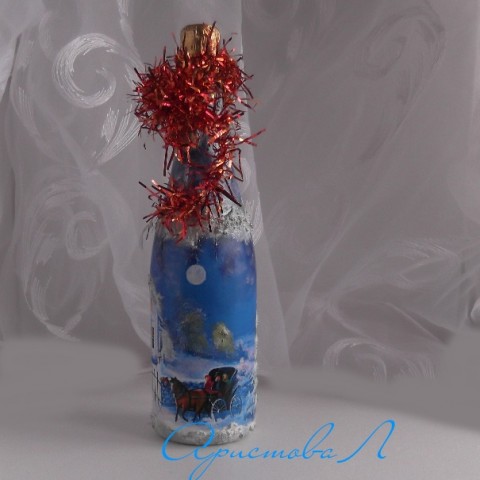Декор новогодней бутылки шампанского в технике декупаж. Видео МК